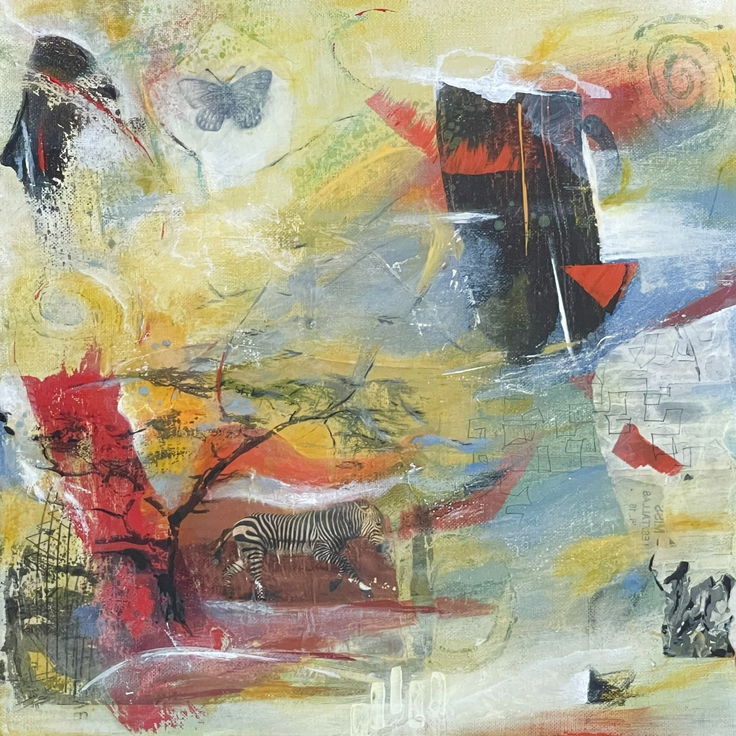 I discovered collage and mixed media and have never looked back since. And now, you’ll find me in my sunny studio, creating abstract paintings and sharing the magic with you.